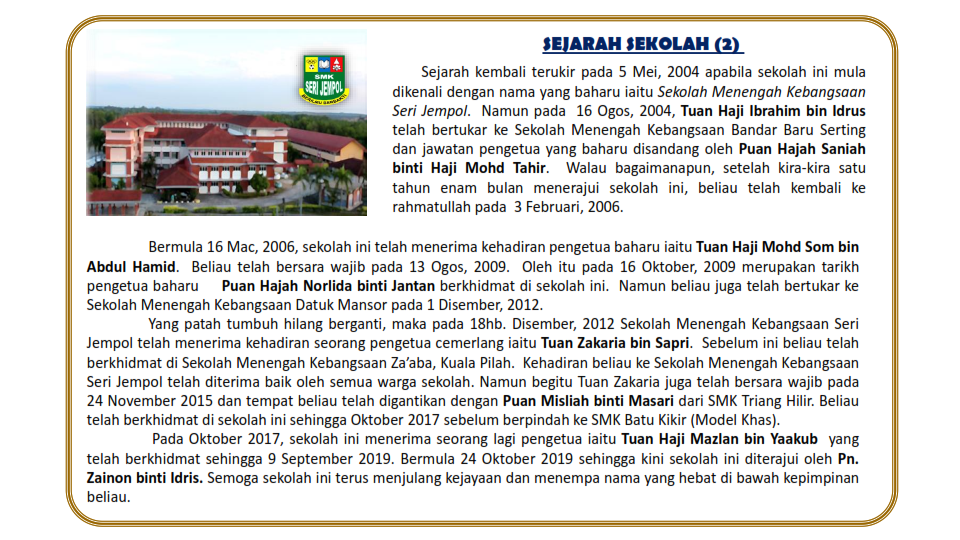 yang terus mewarisi nilai integriti, komitmen, dan keprihatinan dalam mendidik anak bangsa menuju kecemerlangan.